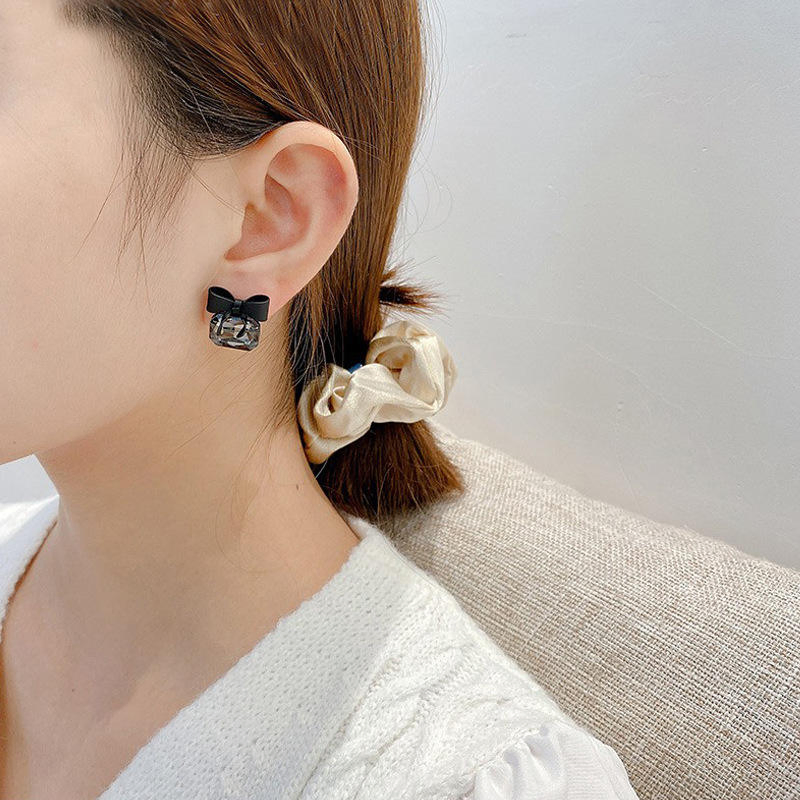 Black Crystal Bowknot Stud Earring