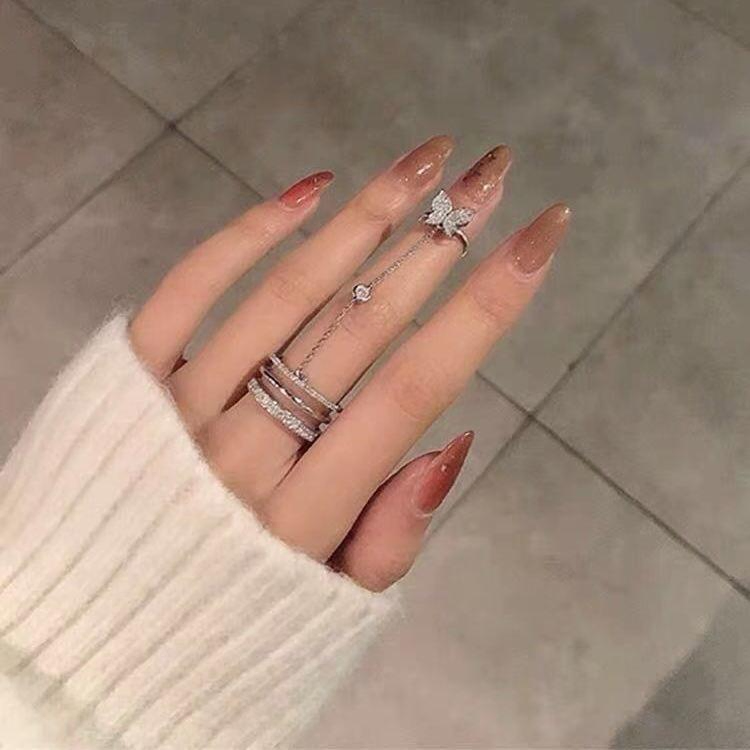 Stylish Double Butterfly Chain Finger Ring (2pc)