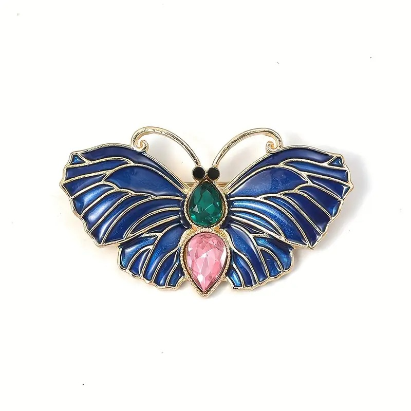 Elegant Enamel Crystal Butterfly Brooch Pin