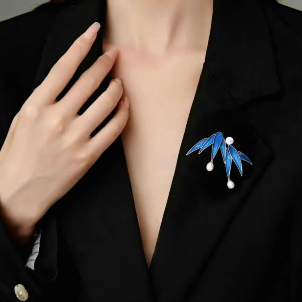 Elegant Pearl Bamboo Leaf Brooch Pin