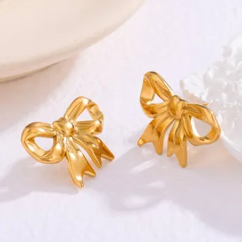 Gold Plated Stainless Steel Bow Stud Earring
