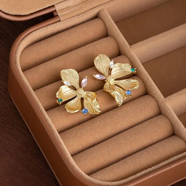 Irregular Metal Flower Drop Earrings