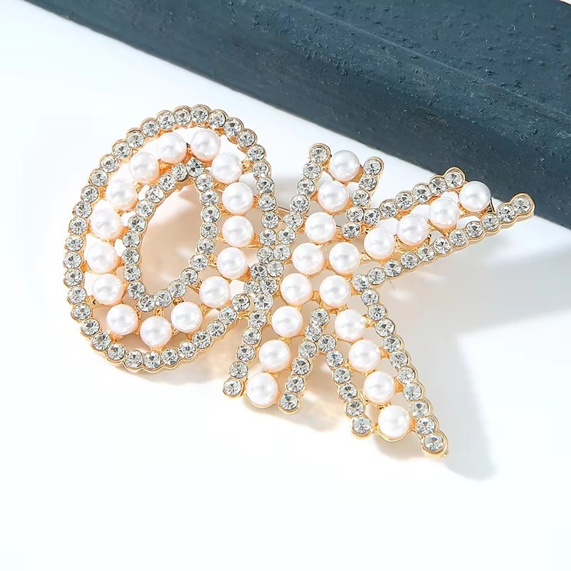 Elegant Pearl Bamboo Leaf Brooch Pin