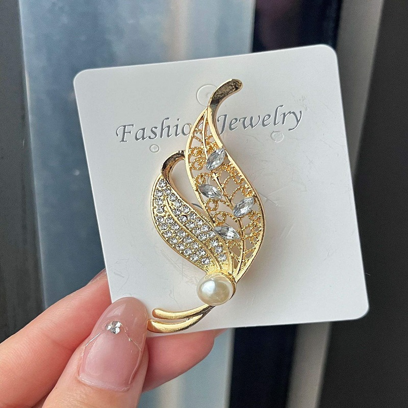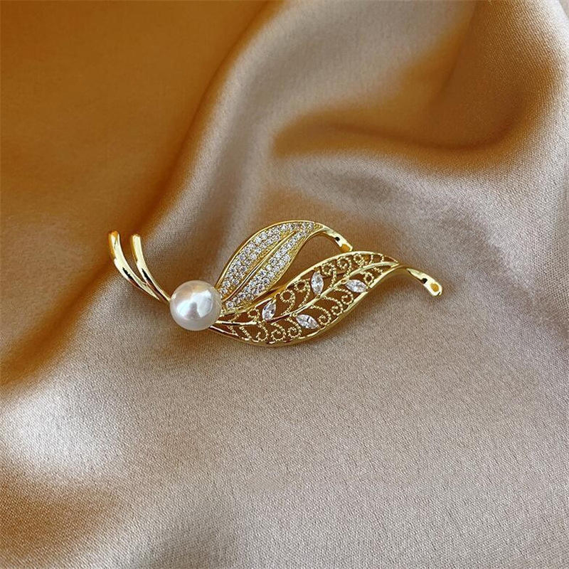 Elegant Pearl Bamboo Leaf Brooch Pin
