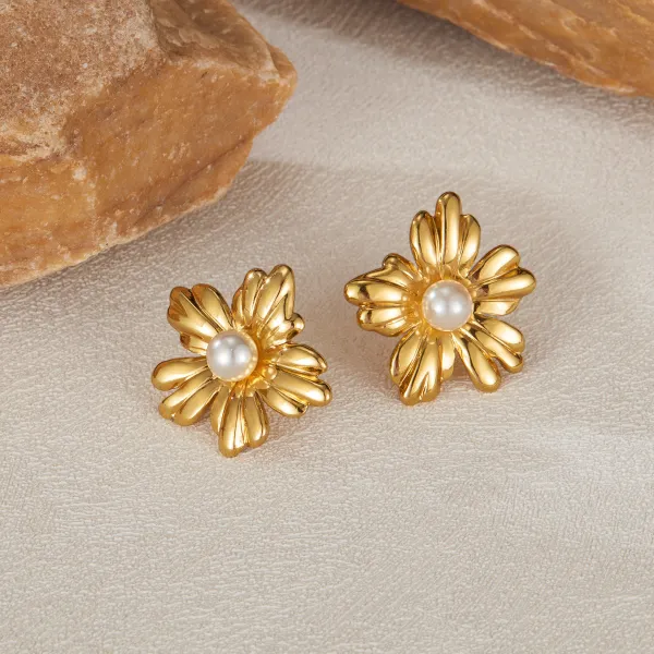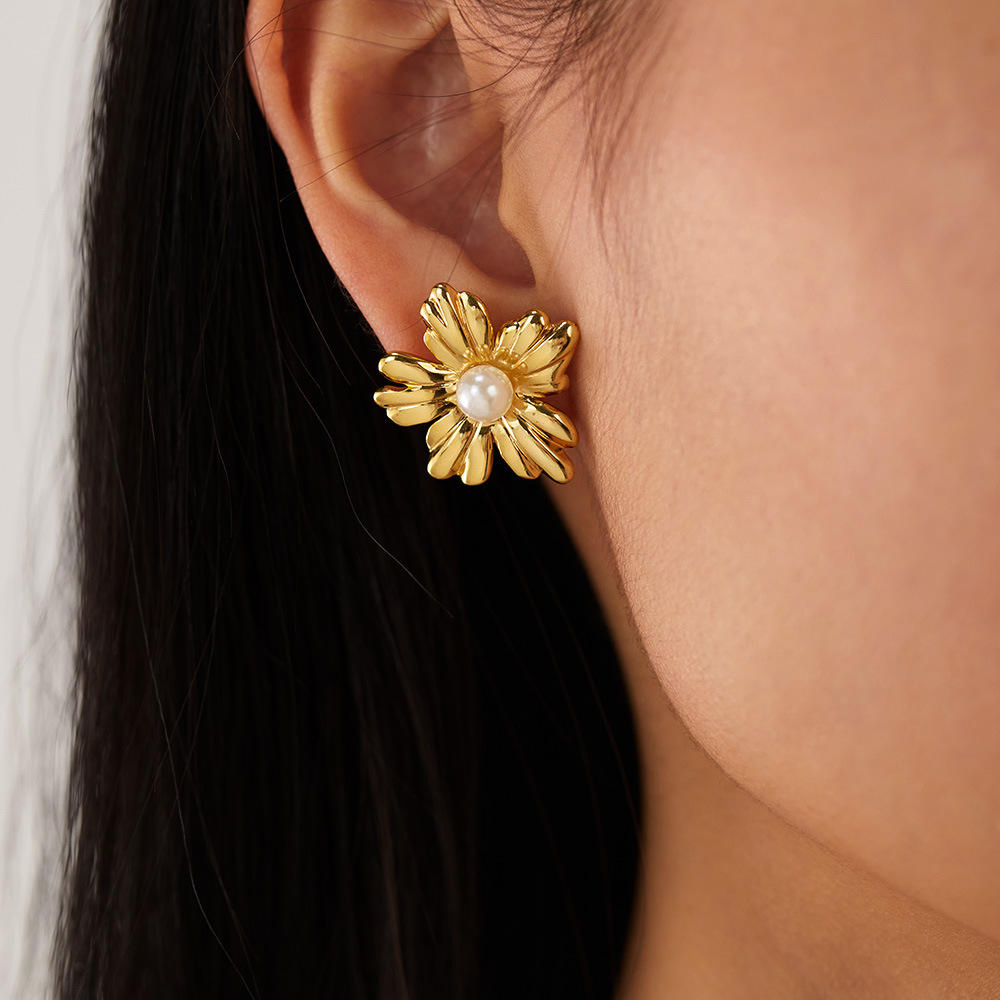Stainless Steel Sunflower Pearl Earring