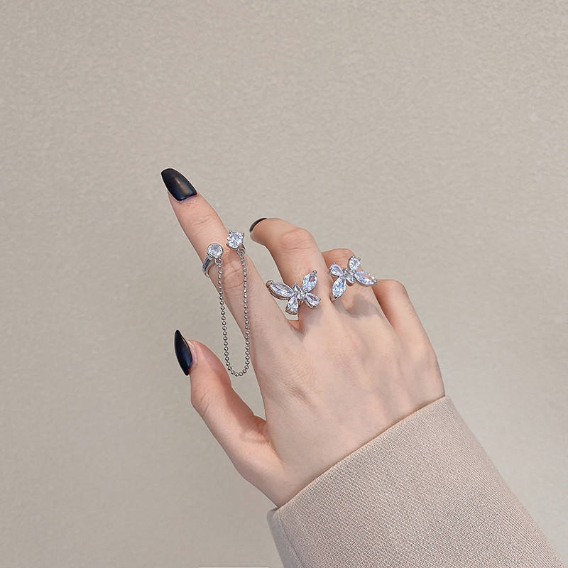 Stylish Double Butterfly Chain Finger Ring (2pc)