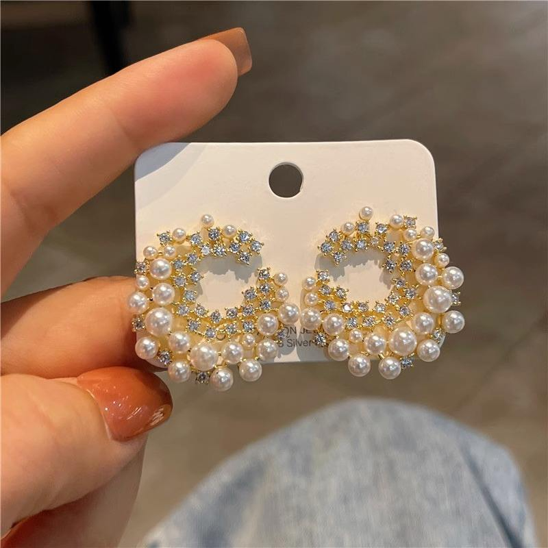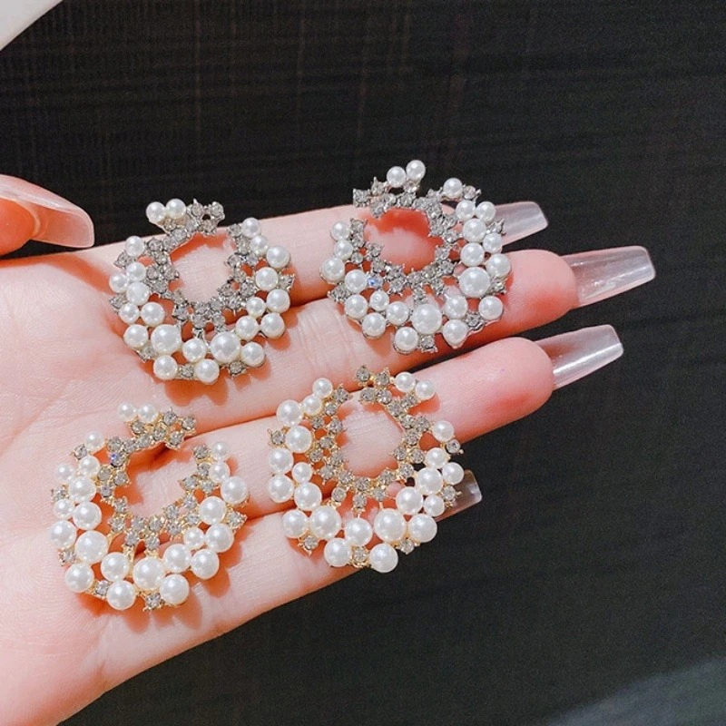 Vintage Crystal Pearl Circle Earrings