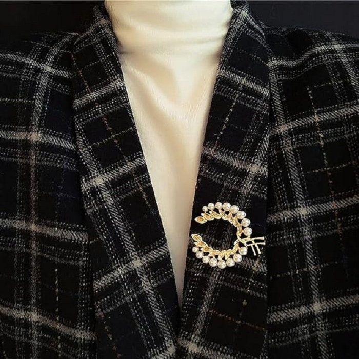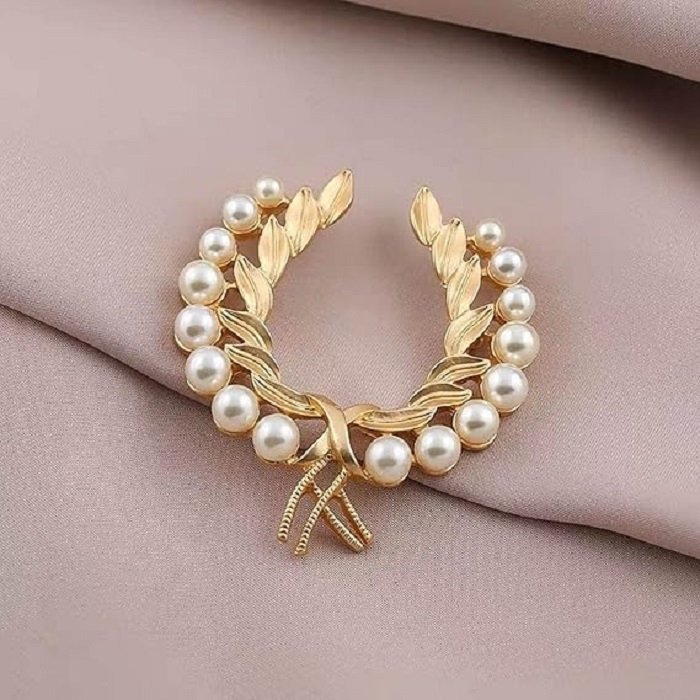Elegant Pearl Bamboo Leaf Brooch Pin